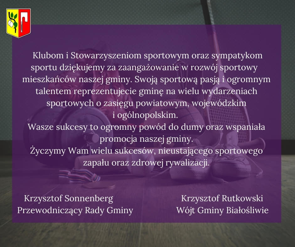 Z tej okazji przesyłamy serdeczne podziękowania i życzenia Klubom i Stowarzyszeniom Sportowym oraz wszystkim sympatykom sportu.