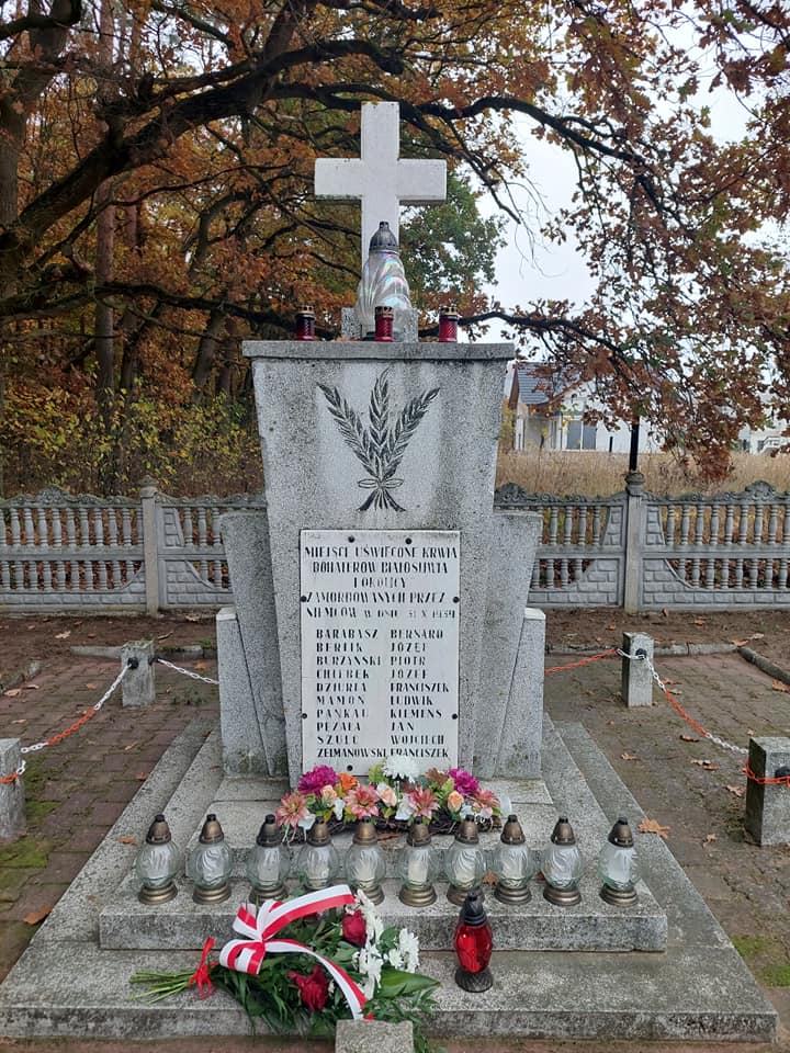 Okolicznościową wiązankę pod pomnikiem pomordowanych w nocy z 30/31 października 1939 roku złożył Krzysztof Rutkowski Wójt Gminy wraz z Marleną Hajman Zastępcą Wójta.
