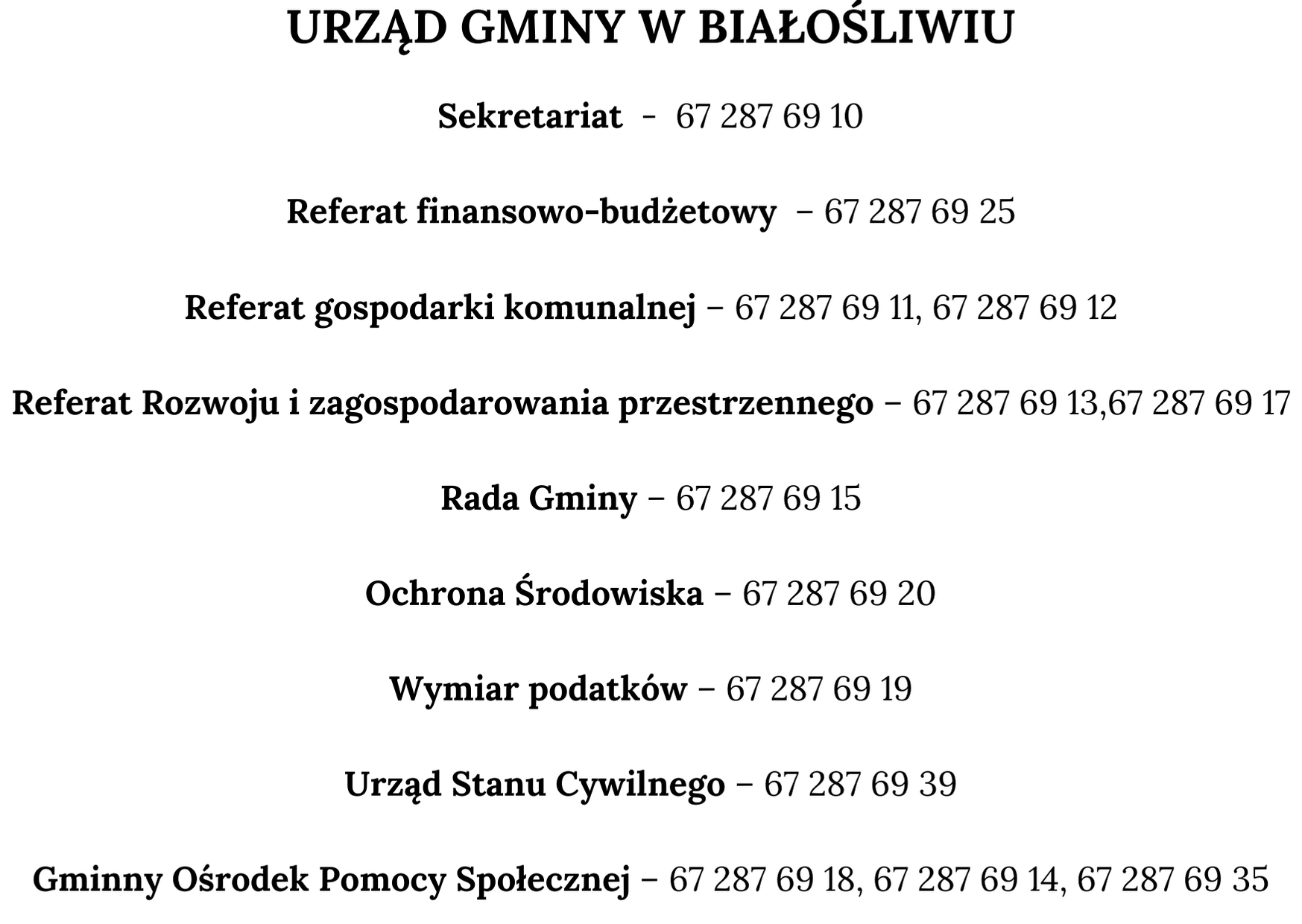 Wykaz ważnych telefonów Urzędu Gminy w Białośliwiu #zostańwdomu